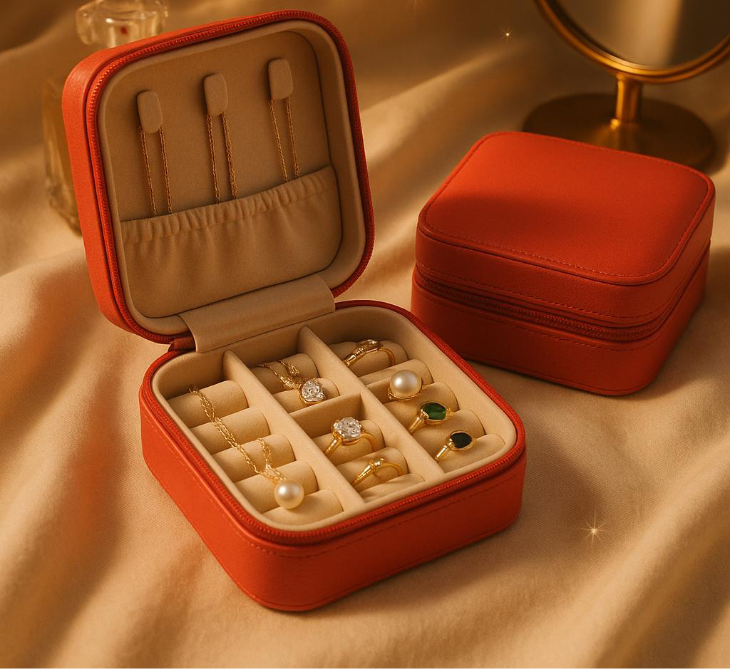 Keep your favourite accessories organized and tangle-free with this compact coral Jewlery travel case. Measuring 10x10x5 cm,...