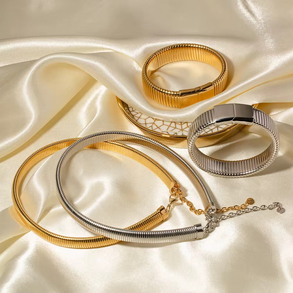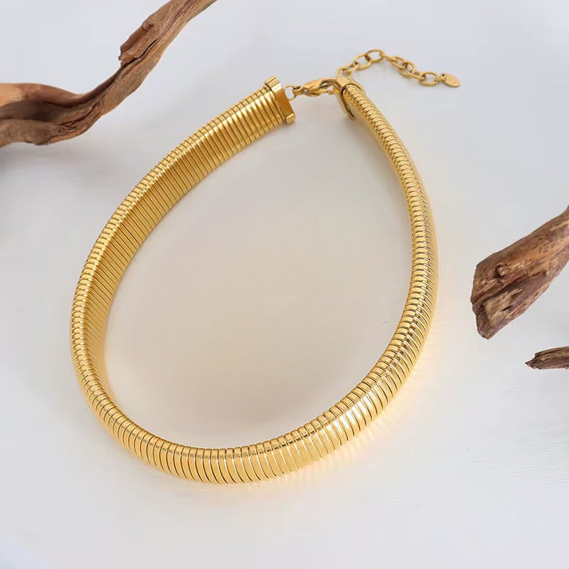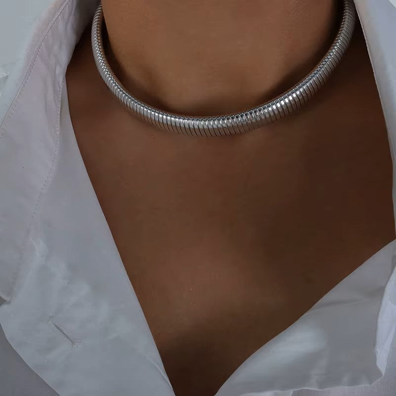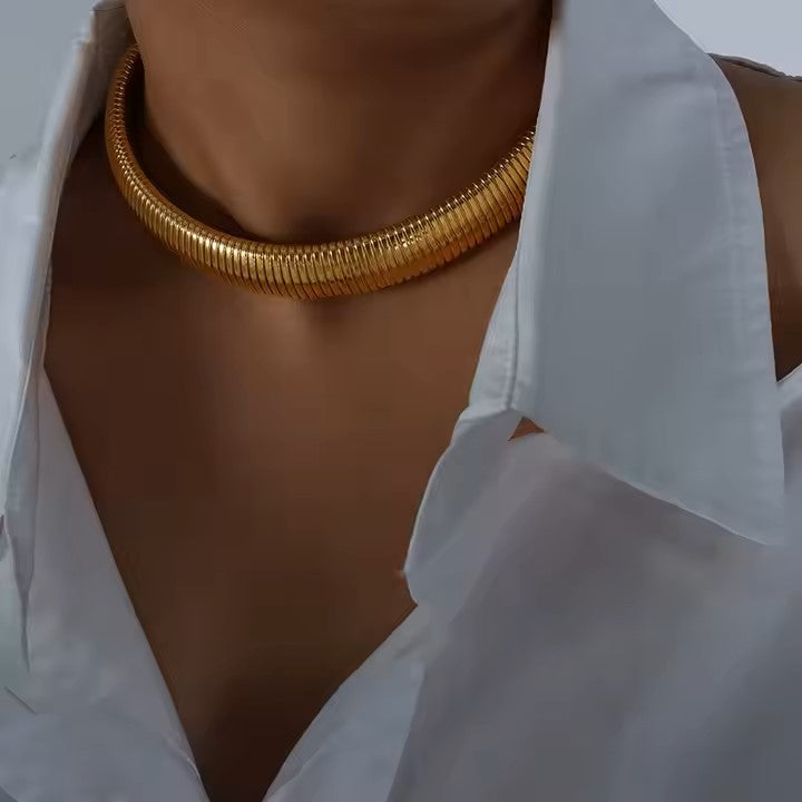 Command attention with this bold coil-style choker, radiating confidence and modern elegance . A statement piece that...